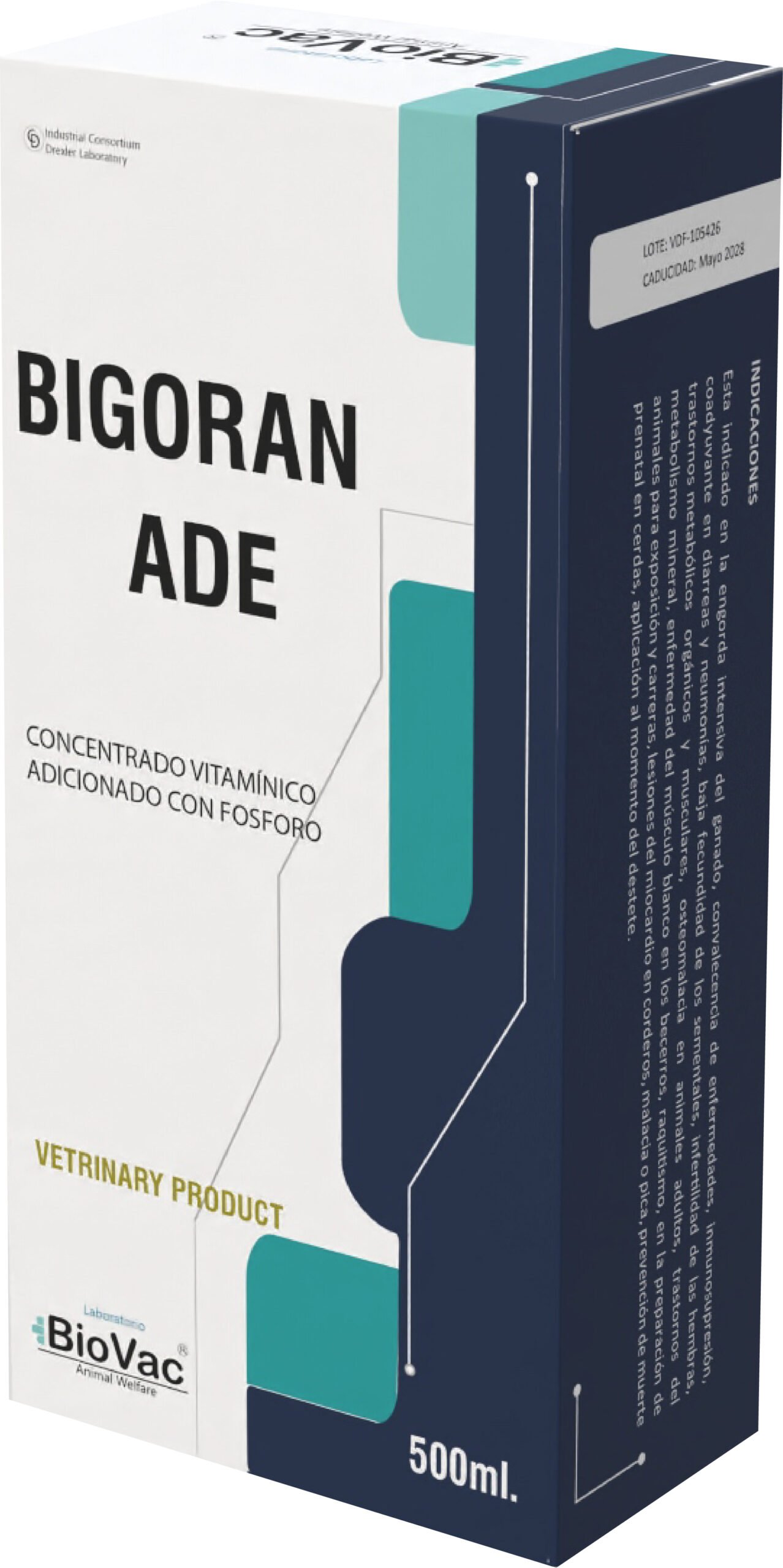 Complejo vitamínico ADE, esencial en el metabolismo del crecimiento y la reproducción, reforzado con fósforo: Vitamina A; esencial para el crecimiento óseo, la reproducción y el desarrollo embrionario. Vitamina D3; fijador de calcio, magnesio y fósforo en huesos y dientes. Vitamina E; mantiene en función normal los sistemas reproductor, nervioso y muscular. Fósforo P; factor del metabolismo y componente de los huesos y dientes. Fórmula hidromiscible inyectable.
